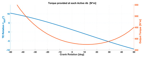 Actuating torque provided by each actuation systems to its active rib during operations.