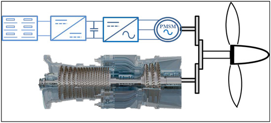 - the gas turbine (Engine_2) keeps the same shaft power of the Engine1 (900 kW), which could allow the use of a permanent magnet synchronous electrical motor (PMSM) only during the take-off phase;