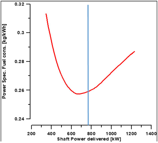 Figure 13. Specific fuel consumption vs power delivered at cruise altitude (5516 m). Engine_2.