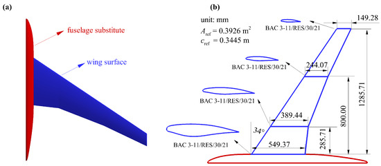 The High Reynolds Number Aero-Structural Dynamics (HIRENASD) wing model is selected as the research model in this section. The HIRENASD wing is a benchmark case in the first AePW (Aeroelastic Prediction Workshop) [36]. Figure 2 gives some information of the HIRENASD wing model. In a wind tunnel test, a pseudobody was installed to eliminate the boundary effects of the wind tunnel wall. But the wing and the body were not connected and the balance only measured the aerodynamic force on the wing. More details about the HIRENASD wing can be found in Ballmann [20].