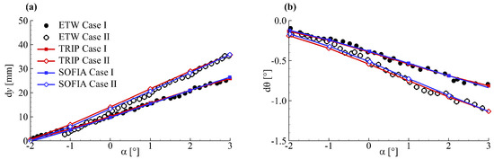 Wing section torsion of NASA Common Research Model (CRM) wing/body/tail configuration: (a) case I; (b) case II.