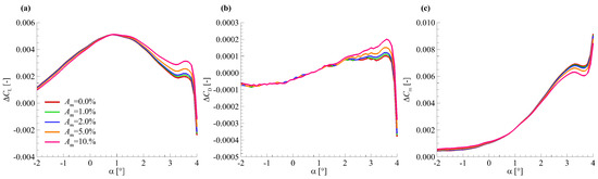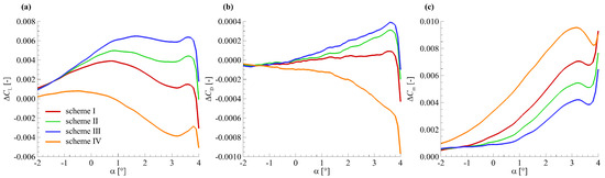 A smaller value of indicates a better prediction of the aerodynamic modelling. There is a total of 25 aerodynamic force data points on the rigid model shape obtained by the CFD solver. In order to show more detail information of the , a cubic spline interpolation is used to obtain aerodynamic force data per 0.1° from −2° to 4°. Thus, there are 61 data points in Figure 8. As a result, the data in Figure 8 is shown as smooth solid lines instead of discrete points.