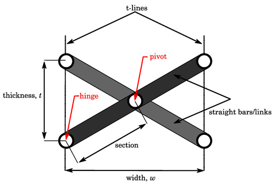 An SLE, also known as a pantograph or scissor-hinge unit, is a special type of kinematic element that is formed by two or more bars hinged together by a kinematic pair, often a revolute joint (“scissor-hinge”) [38].