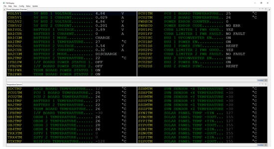 Telemetry client displaying two telemetry pages of housekeeping data.