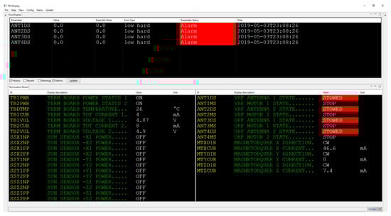 Telemetry client displaying a telemetry page of housekeeping data with violated threshold limits.