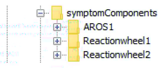 The symptom components AROS1, Reactionhweel1, and Reactionhweel2 corresponding to the detected discrepancies listed in the diagnosis.xml-file.