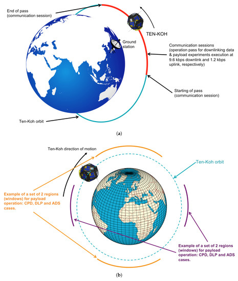 For all experiments and mission objectives, the concept of operations is shown in Figure 7. There is one main ground station (MGS) located at Kyutech, from where all missions are planned and executed, and housekeeping and payload data are downlinked. The mission was defined to start operations in a period of 2–3 weeks after the launch by following the next sequence of events: