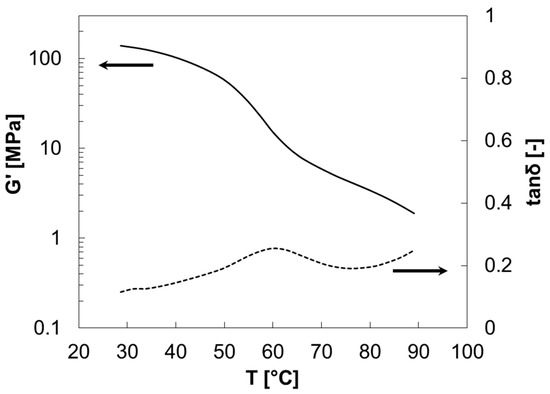 DMA tests confirm these results: A drop of storage modulus, due to the secondary transition, shows that some molecular motion is activated between 40 °C and 70 °C; in this case, evidence of a transition is also shown after the shortest aging time, see