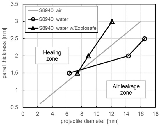 Previous tests conducted on self-healing panels with a range of thickness and spherical projectiles with different sizes indicated the panel thickness/sphere diameter (