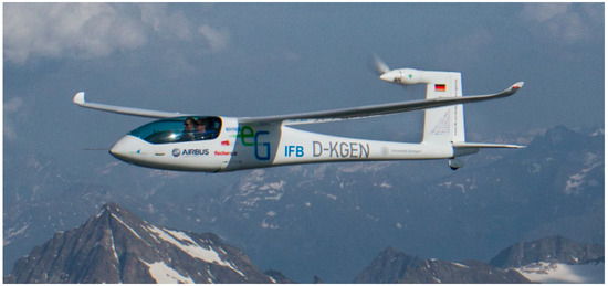 E-Genius is a two seat full electric motor glider. The full-scale e-Genius is a manned technology test aircraft. E-Genius in Figure 1 is built to demonstrate the competitiveness of electrical propulsion over conventional propulsion systems in aviation. It has a wingspan of 16.9 m and a maximum take-off mass of 950 kg. The electric power train allows a maximum range of more than 400 km.