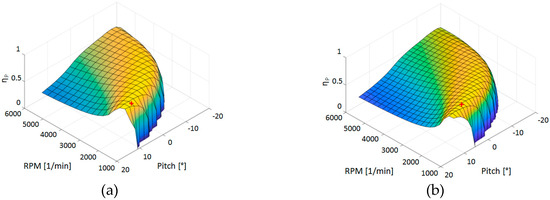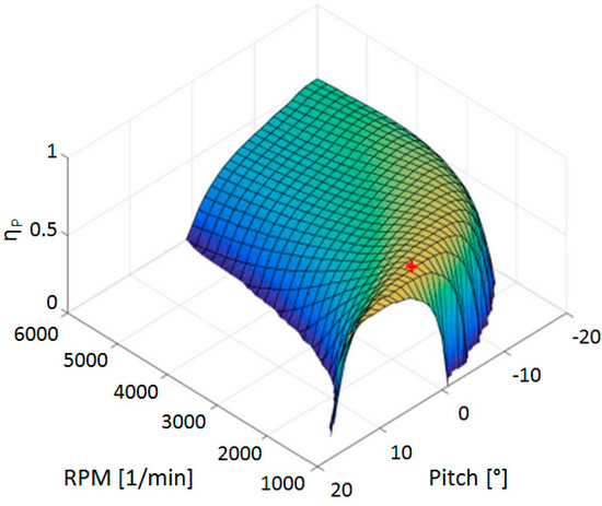 Propeller efficiency at 17 m/s (true air speed) [14].