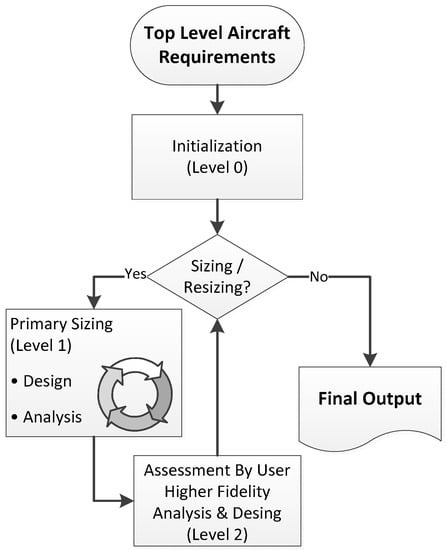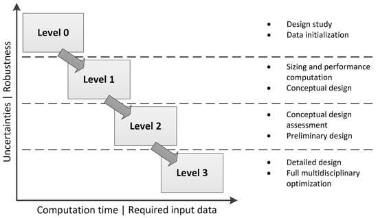 - Level 1 tools conduct the primary sizing. This procedure typically iterates the maximum take-off mass. The tools use physical models of low to medium complexity to achieve short computation time and hands-off calculation.