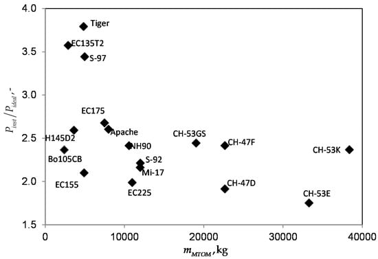 Figure 4 shows the results of Equations (8) to (9) for a single main rotor. Density equals ground conditions with 1.225 kg/m3 and the tip speed was set to 210 m/s.