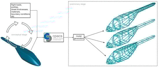 - Schwinn, D.B. Applied parametrized and automated airframe modeling methods in the preliminary design phase. Int. J. Model. Simul. Sci. Comput. 2015, 6, 1550037. [Google Scholar] [CrossRef]