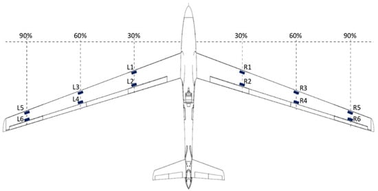 Locations of the IMUs installed in the wings to measure the accelerations on the wing.