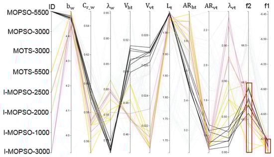 - Kipouros, T.; Inselberg, A.; Parks, G.; Savill, A.M. Parallel Coordinates in Computational Engineering Design. In Proceedings of the AIAA Multidiscip. Des. Optim. Spec., Boston, MA, USA, 8–11 April 2013; Volume 1750, pp. 1–11. [Google Scholar] [CrossRef]