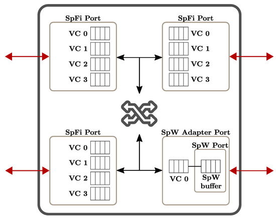 - Saponara, S.; Fanucci, L.; Tonarelli, M.; Petri, E. Radiation Tolerant SpaceWire Router for Satellite On-Board Networking. IEEE Aeros. Electron. Syst. Mag. 2017, 22, 3–12. [Google Scholar] [CrossRef]
