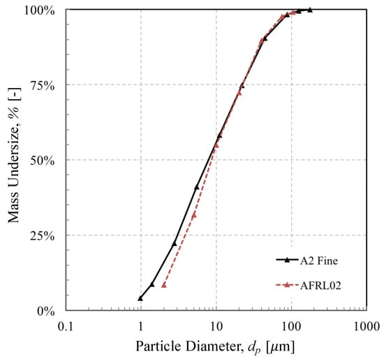 The mismatch between test dusts evident in Figure 11 also illustrates the influence of particle mineralogy, at least from the perspective of thermal and velocity response times. The AFRL02 test dust contains a large proportion of albite (17%), which the other two dusts do not have. This seems obvious, but as we can see from Table 3, not all of the albite in the dust reached that melting temperature. In fact, only half of the albite that impacted the cylinder met the condition for sticking, which emphasises the point that diameter, specific heat, Nusselt number, and thermal conductivity all play a role in the likelihood of particle adhesion. It also illustrates that the actual dust seen by an engine component is likely to be different from that which was initially ingested, owing to these mechanisms of inertial and thermal “sorting”. There is more work to be done to investigate the influence of turbulence, surface temperature, cooling, and adhesion mechanics, but this could be a useful correction when selecting a suitable test dust to challenge a given component.