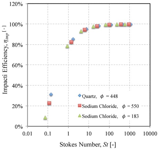 where f is the Stokes drag correction factor and is the gas viscosity. The Stokes number can be used to predict with reasonable accuracy the efficiency of an inertial particle separator, according to Barone et al. [], using: