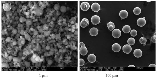 Scanning Electron Microscopy (SEM) images of small (a) and large (b) magnesium particles.