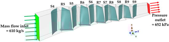 - Simões, M.R.; Montojos, B.G.; Moura, N.R.; Su, J. Validation of turbulence models for simulation of axial flow compressor. In Proceedings of the 20th International Congress of Mechanical Engineering (COBEM), Gramado, RS, Brazil, 15–20 November 2009. [Google Scholar]