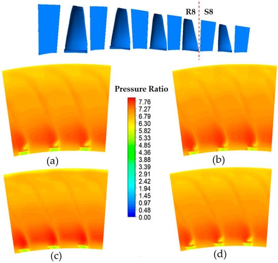 - Liu, Y.; Sun, J.; Tang, Y.; Lu, L. Effect of slot at blade root on compressor cascade performance under different aerodynamic parameters. Appl. Sci. 2016, 6, 421. [Google Scholar] [CrossRef]