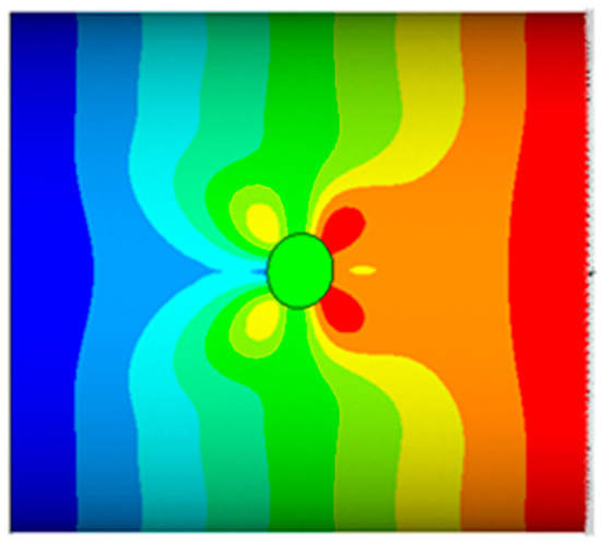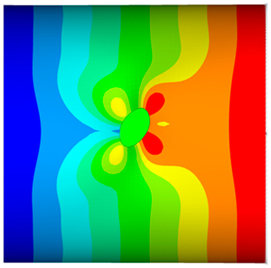 The effect of the cylinder eccentricity on the maximum stress, for different cut-out semiminor axis values (bc), has not been reported for the sake of brevity, it being negligible. As an example, in Figure 12, a detail of the cut-out region’s deformed shape, with the displacement magnitude contour plot, is plotted for one of the considered configurations.