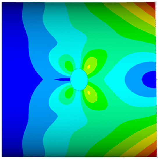 As an example, in Figure 15, the displacements magnitude contour plot near the cut-out for torsional loading conditions is presented.