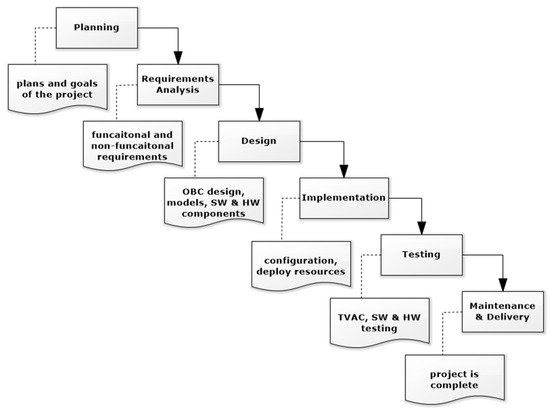 A university-class CubeSat project’s life-cycle will include multiple phases and steps. However, some of these steps may be less critical than others and can be skipped or can receive less time for development. Figure 7 shows a sequential approach of a university-class CubeSat project life-cycle [31]. The agile methodology can be used for an experimental 1U CubeSat project. With this approach, the phases of a project life-cycle can be divided into small iterative steps and design testing scenarios so that they can detect errors at an early stage of the project and fix them quickly. Nevertheless, some students may still prefer to implement traditional methodologies, such as the v-model or waterfall methodologies for their CubeSat projects [34]. Others may also consider the spiral-model when they think of risk analysis as a significant factor [29].