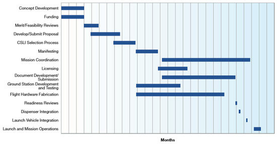 A timeline of a CubeSat project’s phases [13].