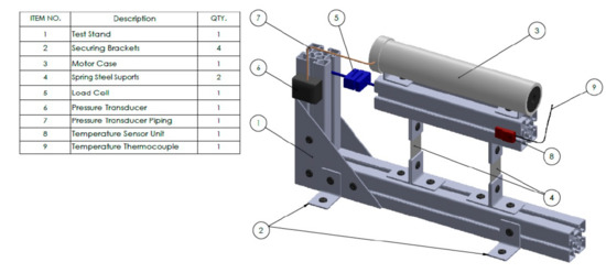 Schematic of the laboratory-rocket motor test stand with sensors.