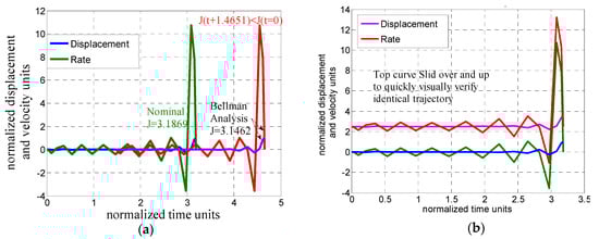 Bellman’s principle holds true for this extremal control. The trajectory is the same and the cost function is less than the previous cost function. Plots containing the trajectories for the nominal zero start point and the Bellman’s analysis are simultaneously displayed in