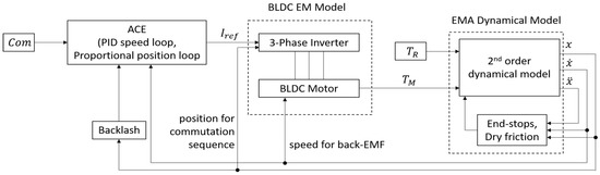 High-level block diagram the Reference EMA Model employed in this work. BLDC: BrushLess Direct Current; ACE: Actuator Control Electronics.