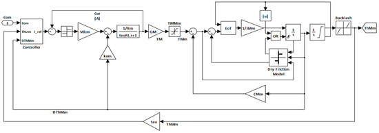 - The EMA Dynamical Model block simulates the mechanical effects within the motor and the transmission, by means of a single degree of freedom MCK model. Additionally, this model accounts for several non-linear effects that characterize the dynamic response of the mechanical system, such as dry friction [23,24], backlash [25], and mechanical end-stops [26].