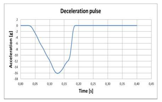 The resultant deceleration profile applied to the sled is the same as the one used for the baseline experimental test described in Section 2 and shown in Figure 2. All baseline experimental conditions remained unchanged.