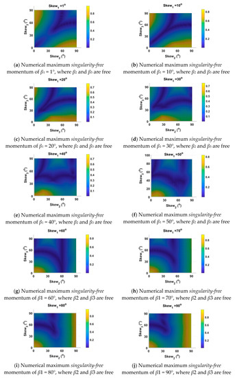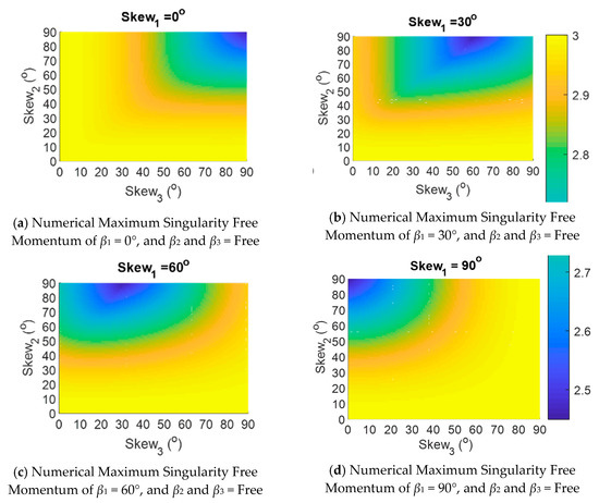 Numerical Maximum Singularity Free Momentum of β1 = 0°, 30°, 60°, and 90°, and β2 and β3 = Free.