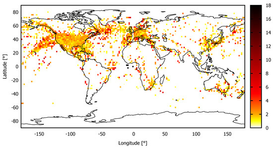 The prediction uncertainty shown in Figure 3 is smaller in the northern hemisphere than in the southern hemisphere (Figure 3). Specifically, in the United States, the prediction is very good. This gain in precision is the result of highly frequent measurements taken by aircraft within the AMDAR concept. Together with the even-more locally limited radiosonde measurements, these data represent reality best. Aircraft type and altitude-specific measurement errors in temperature have been quantified around 1 K [20]. Mean differences in wind speed between these local measurements and the closest global GFS model output are approximately half of the differences between GEFS and GFS (compare Figure 3 with Figure 5).