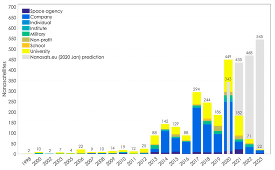 - Available online: https://www.nanosats.eu/ (accessed on 21 January 2020).