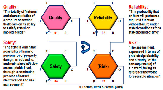 The concepts of quality, reliability, risk and safety are correlated, as shown in the FRAMED-IN-FRAM® diagram of quality-reliability-risk-safety paradigm (Thomas et al. [2]) in Figure 14.
