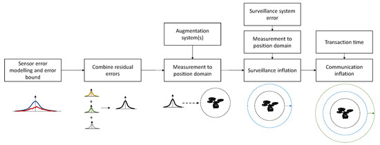 This sub-section covers the generation of the CNS risk protection volume. The methodology as illustrated in Figure 5 is adopted from the approach introduced in [36], which is used for solving the autonomous Detect-and-Avoid (DAA) problem.