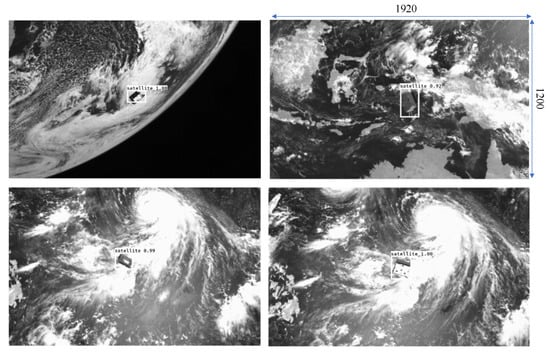 The YOLOv3 network is trained for the spacecraft detection phase. The choice of this network is due to its robust and effective performance in many real-time object detection applications []. It detects the spacecraft with a single forward pass through the network, hence its fast and efficient. This is very amenable to FPGA implementation and it is supported by Xilinx DPU IP core. The network is trained on a single class, named , since we are only detecting the satellite object within the image. It is trained with the default 9 anchor boxes. The input images are of size 1920 × 1200. YOLOv3 resizes them to 416 × 416, detects the object and outputs the bounding box coordinates with the original size as the reference. The images in Figure 9 show performance of the YOLOv3 network in detecting the spacecraft. Though the confidence level is not critical in this application, it shows that the network can detect the spacecraft in varying illumination conditions such as cloudy background.