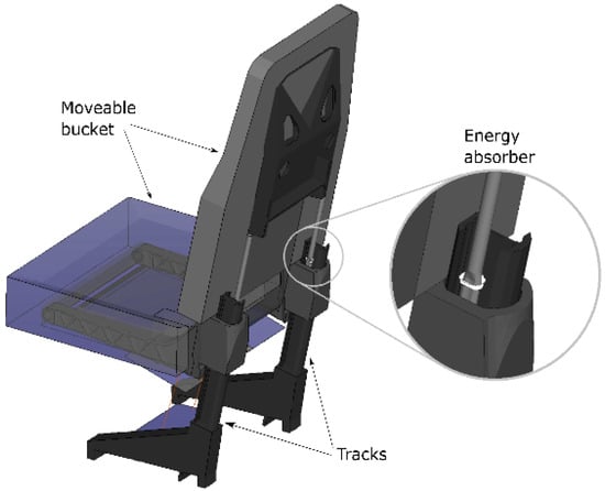 Energy-absorbing seats on helicopters are formed by a set of tracks fixed to the floor, a moveable seat bucket and shock absorbers [27], as simplified in Figure 1.
