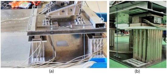 (a) Subfloor energy absorbers and (b) detail of the load cells mounted between the upper sandwich floor and the energy absorbers.