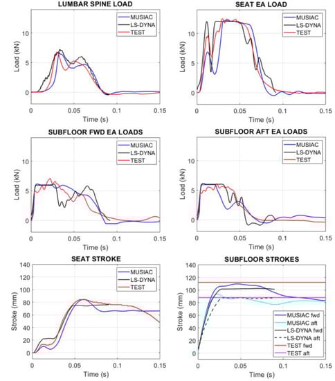 If the vehicle is equipped with different energy-absorbing stages, located in the seat, subfloor and landing gear, they could be tuned to harmonize their interaction and minimize the occupant’s injuries [18,19]. Unfortunately, this mutual influence is yet to be studied and included in regulations.