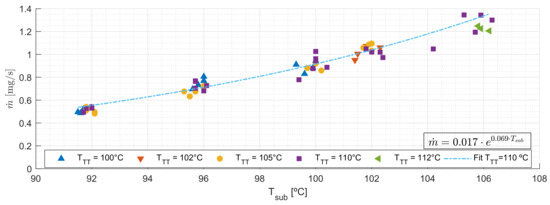 Mass flow rate measurements vs. sublimation body temperature.