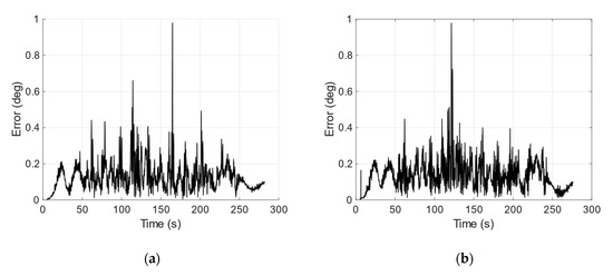Attitude Error vs time in a random path experiment. (a) sunlight on; (b) sunlight off.
