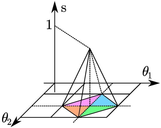 The first approach on the functional form for s is piecewise linear. The triangle function can be generally defined as in Equation (5). An example can be seen in Figure 6.