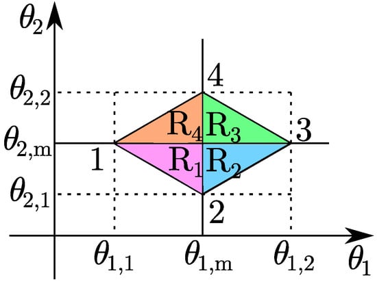 Given with and it is possible to identify four regions as reported in Figure 7 and Figure 8. For convenience, each region is identified by the same index of one of the two border vertices.