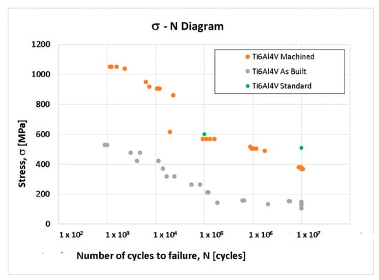 The results shown in the Figure 10 demonstrate that as expected, the fatigue behavior of as built samples is significantly worse than those ones of machined samples.