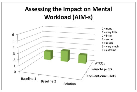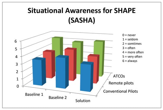 - Human Performance was covered by (1) answering the Assessing the Impact on Mental Workload (AIM-s) questionnaire [18], (2) answering the Situation Awareness for SHAPE questionnaire (SASHA) [19]; (3) answering the SHAPE Automation Trust Index questionnaire (SATI) [20]; and (4) by a general estimation of the perceived level of additional demand on human factors resources, like workload or mental capacity, compared to pure manned aviation, on a scale from 1 (unacceptable high additional demand) to 10 (no additional demand), by all participants, from their professional perspective.